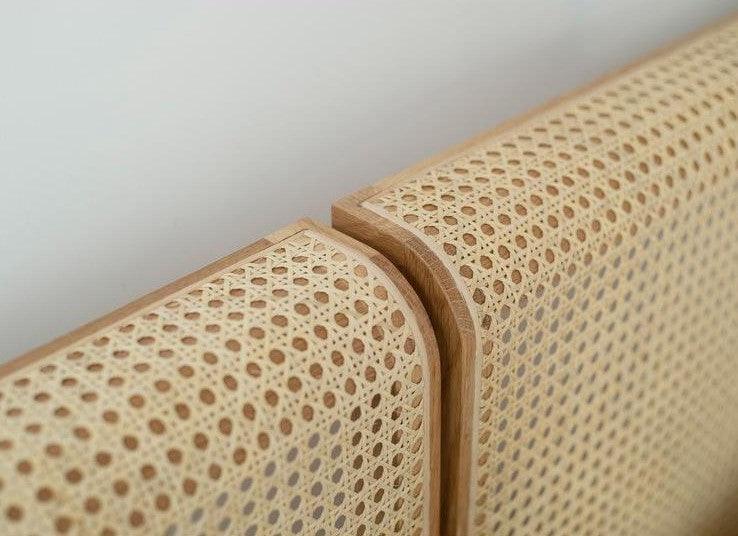 MATHURA bed frame features an intricate craftmanship through its high quality solid ash wood frame and finely crafted rattan headboard to feature a beautiful elegant look. This bed is sure to turn heads in the bedroom. A little bit of the tropics fused with artisan craftsmanship.