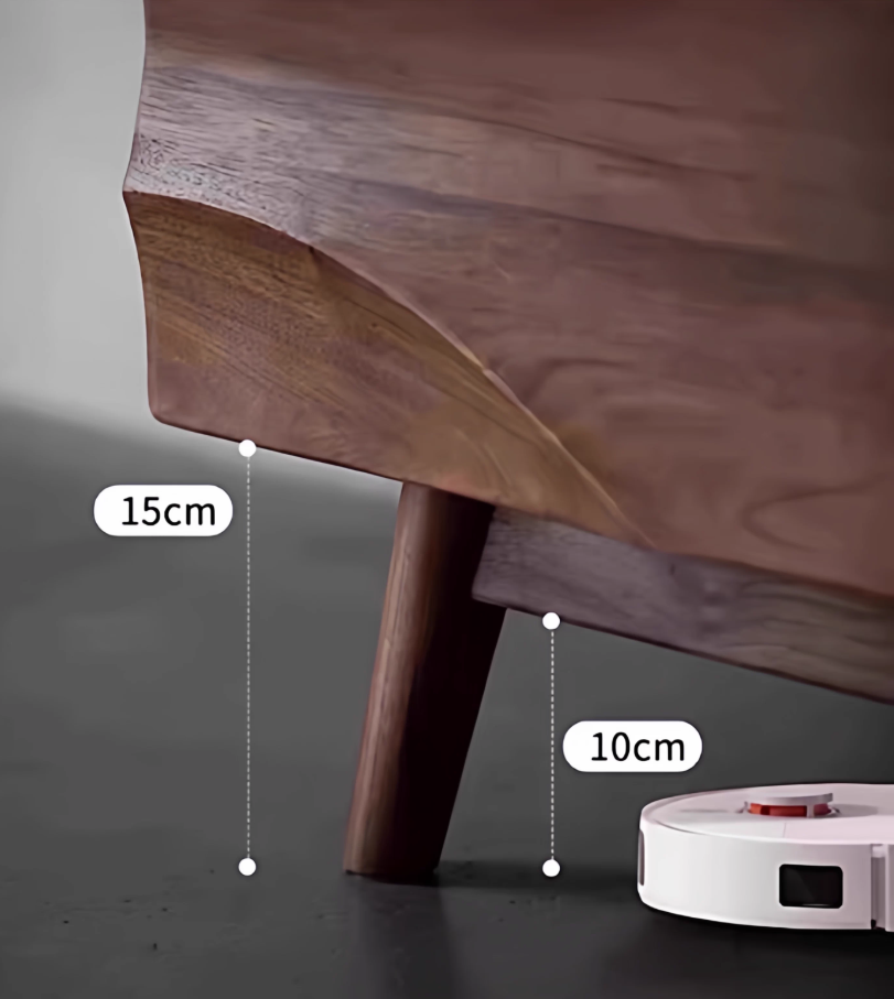 - Elevated solid wood legs (15cm clearance) – robot vacuum friendly