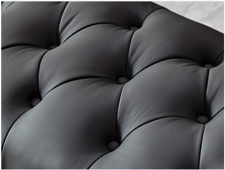 Total statement - made to impress its owners. ROSELLE ottoman entryway bench is both modern and practical that is clad itself with luxe appeal.  Sit on a padded surface wrapped on a leather upholstery. Enjoy the beautiful accent of stainless steel gold frames - it doesn't get more statement than this.  For storage space - simply pull open the drawers to reveal a roomy compartment.