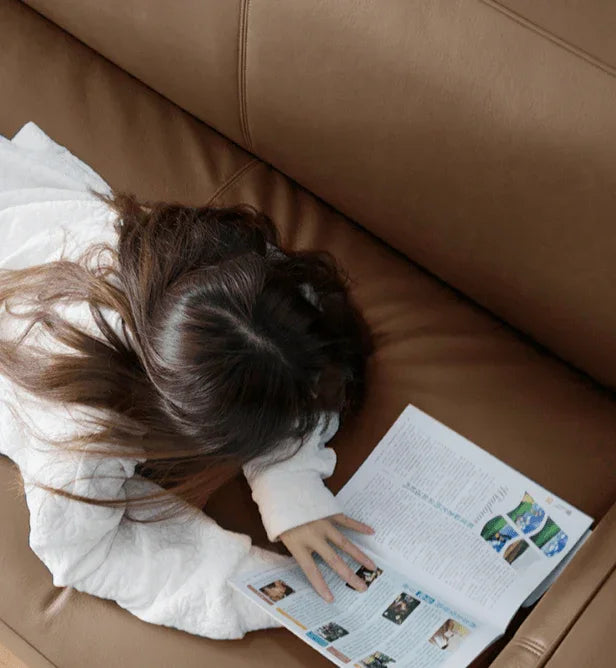 This beautiful genuine leather sofa brings contemporary, curl-up comfort to your living room. Natural pine solid wood frame ensures this couch will last for years to come.